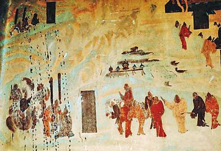 敦煌壁畫(huà)上的張騫出使西域圖。