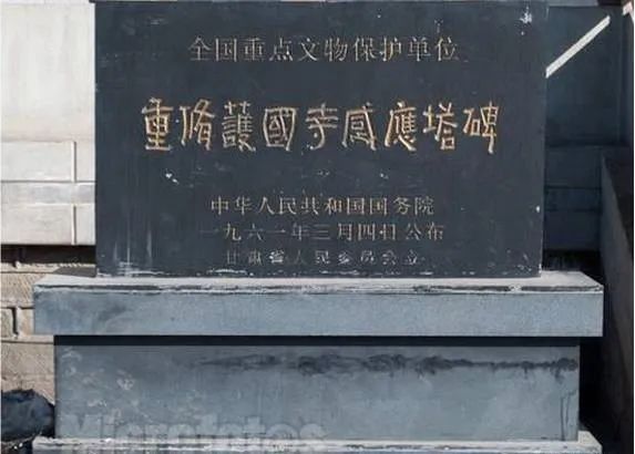西夏碑,本名《涼州重修護國寺感通塔碑銘》,碑高26米,寬1米,厚03米。碑首呈半圓形,兩面正中用漢文和西夏文篆額,邊陰刻對稱的伎樂舞女,翩翩起舞,動作優(yōu)美,造型準確;舞女胸和手腕上有飾物,赤露上身、雙腳,下著長裙,面形肌肉豐滿,吸收了敦煌飛天的藝術特點。碑身的兩邊呈殺角,邊上刻忍冬紋。碑一面為西夏文,共28行,滿行65字。西夏文是一種被人們遺忘了的語言文字,無法辨認,當時被稱為“天書”。但碑的陽面為漢文,共26行,滿行76字。張澍先生見碑陽文末尾有“天祐民安五年歲次甲戌十五日戊建”落款,“天祐民安”為西夏年號,遂判定此碑為西夏碑文,因此,人們以后稱之為西夏碑。1961年就被國務院公布列為全國第一批重點文物保護單位。
