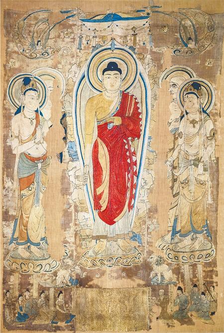 唐代中期,9世紀,絹本設色,高101.6厘米,寬58.5厘米,英國不列顛博物館藏