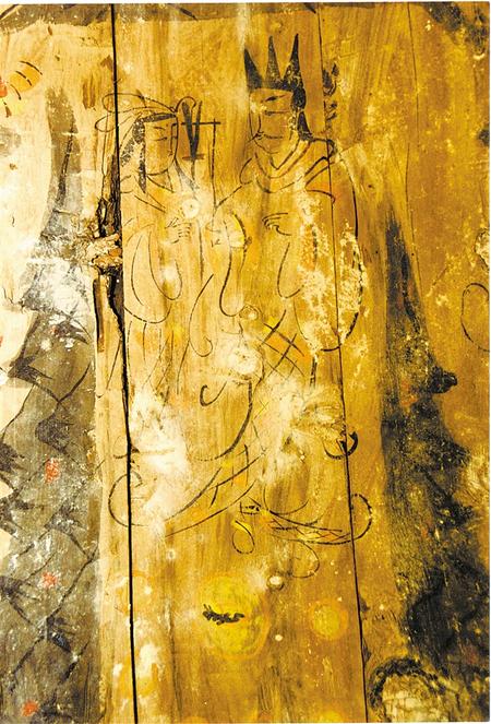 2002年新城毛莊子魏晉墓出土女棺伏羲女媧圖棺板畫(局部)。