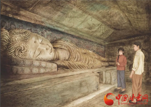 蘭州市民張女士忠愛敦煌藝術(shù),家里收藏了很多關(guān)于敦煌的書籍、文創(chuàng)產(chǎn)品。每次逛書店,看到與敦煌相關(guān)的圖書,她都要仔細(xì)翻閱??吹健锻坎级鼗汀烦霭?,她特意為女兒買了一本。“這本書的故事性很強(qiáng),代入感也比較強(qiáng),對(duì)青少年來說,是本很不錯(cuò)的課外讀物。既能看到敦煌藝術(shù)、敦煌文化背后的故事,又能從幾個(gè)主人公身上體會(huì)到他們不同的精神內(nèi)涵,特別感染人,很有正能量。”