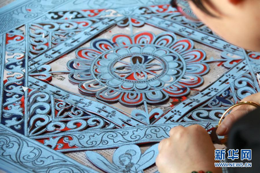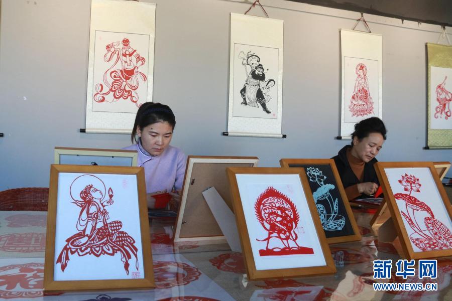 在甘肅敦煌小鎮(zhèn)鳴沙書院,學(xué)員在“敦煌剪紙”酒泉市級(jí)非物質(zhì)文化遺產(chǎn)代表性傳承人莊生娟的工作室內(nèi)剪紙(2020年12月31日攝)。新華社發(fā)(張曉亮 攝)