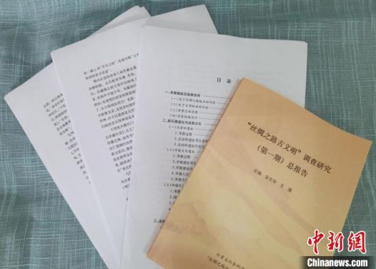 7月下旬,甘肅省社會科學(xué)院工作人員展示《絲綢之路古文明》第一階段考察報告打印版。 閆姣 攝