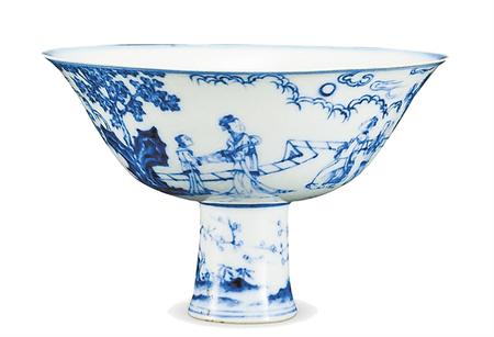 青花瑤臺(tái)賞月圖瓷鍾
