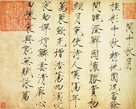 《閏中秋月帖》中所記為一首七言律詩(shī):“桂彩中秋特地圓,況當(dāng)余閏魄澄鮮。因懷勝賞初經(jīng)月,免使詩(shī)人嘆隔年。萬(wàn)象斂光增浩蕩,四溟收夜助嬋娟。鱗云清廓心田豫,乘興能無(wú)賦詠篇。”其內(nèi)容敘述了當(dāng)年中秋夜?jié)M街華彩、月光皎潔、萬(wàn)象浩蕩的美景。