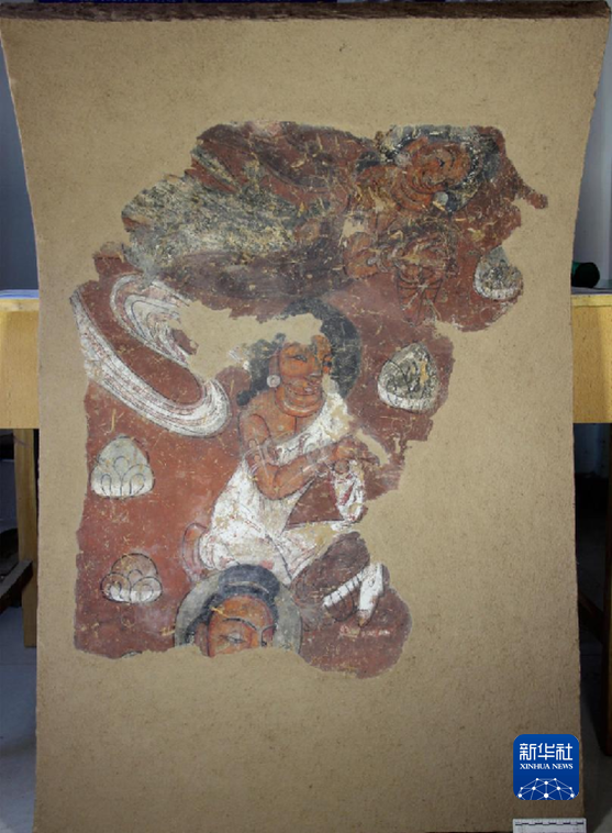 新華社蘭州12月15日電(記者白麗萍)記者15日從甘肅省武威市天梯山石窟保護(hù)研究所了解到,敦煌研究院在對(duì)天梯山石窟進(jìn)行搬遷壁畫彩塑修復(fù)過(guò)程中,發(fā)現(xiàn)一幅完整的北涼飛天壁畫。