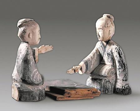 武威市磨嘴子出土的西漢彩繪 對弈六博俑