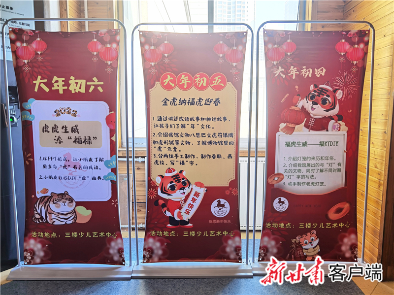 “后續(xù),還有大年初三的‘靈虎送福——虎紙漿畫DIY ’活動(dòng)、大年初四的‘?;⑸?mdash;—福燈DIY ’活動(dòng)、大年初五的‘金虎納?;⒂?rsquo;活動(dòng)、大年初六的‘虎虎生威添‘福祿’活動(dòng)’。”省博物館社會(huì)教育部主任盧冬介紹,每場(chǎng)活動(dòng)面向約30名小朋友開展,經(jīng)過(guò)前期策劃準(zhǔn)備,除了省博物館社教部的10余名工作人員,給孩子們普及有關(guān)虎和北京冬奧會(huì)的知識(shí),還有來(lái)自西北師范大學(xué)、蘭州二十七中等校的學(xué)生志愿者,指導(dǎo)輔助孩子們玩游戲、做手工。