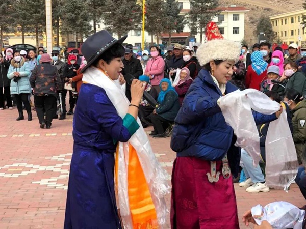 肅南縣民族歌舞團(tuán)在鄉(xiāng)鎮(zhèn)慰問演出。肅南縣民族歌舞團(tuán)供圖