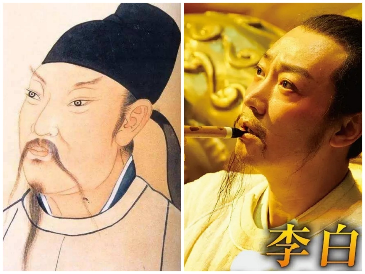 圖:李白畫(huà)像及電影《貓妖傳》中的李白形象