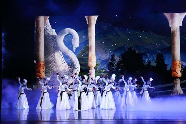 全劇通過極具民族特色和地方特色的舞蹈,展現(xiàn)了從西北大漠到江南水鄉(xiāng)的自然景觀和人文風(fēng)貌,再現(xiàn)了古絲綢之路上各民族通過商貿(mào)往來增進(jìn)友誼的繁榮盛景。