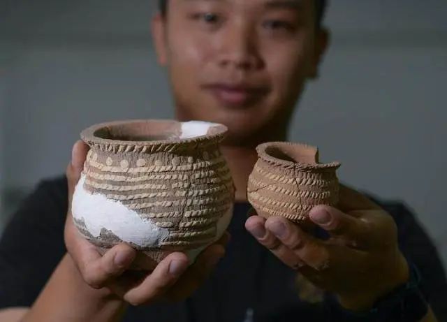文物工作者對(duì)南佐遺址內(nèi)出土的陶器進(jìn)行修復(fù)(8月25日攝)。新華社記者 李賀 攝