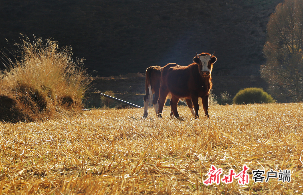 在秋日暖陽(yáng)的照耀下,山谷中的楊樹(shù)林染上了一層絢麗色彩,干凈整潔的農(nóng)家院掩映其中。牛羊在草地上悠閑覓食,與汩汩流淌的溪水相映成趣。一派多姿多彩的美麗畫(huà)卷,令人心曠神怡、流連忘返。