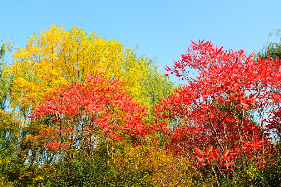隨便鋪開畫紙,蘸取一點(diǎn)點(diǎn)秋色,藍(lán)天、紅墻、金葉……都是最美的色調(diào)。