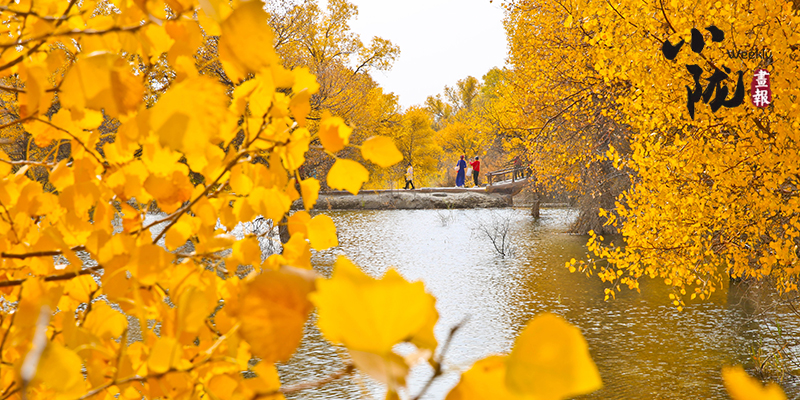 秋風(fēng)起時,一樹金黃在湛藍(lán)的天空下連綿不絕,映著湖面,和流云飄逸的藍(lán)天一起,綻放成一幅壯麗的圖景。