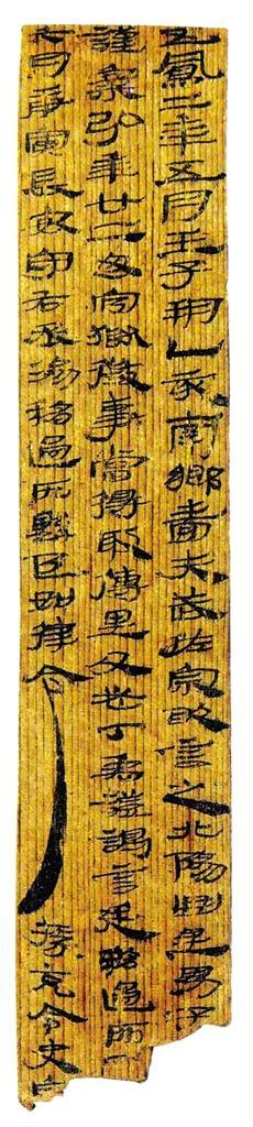 簡或稱札,一般長約23厘米,一般每簡寫一行字,寬度在0.5-1厘米左右,根據(jù)材質(zhì)不同,分為竹簡和木簡。我國南方盛產(chǎn)竹子,所以目前發(fā)現(xiàn)的多為竹簡,而西北地區(qū)氣候干燥,竹子較少,多為木質(zhì)簡。所用木材一般為胡楊、紅柳、松木三種。