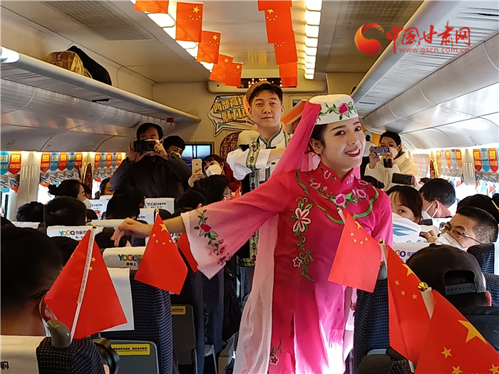 飛天與花兒相擁,甘肅與寧夏直通。蘭銀高鐵中蘭段開(kāi)通,也讓銀蘭高鐵全線貫通。為了慶祝這一歷史時(shí)刻,D9058次列車(chē)乘務(wù)組準(zhǔn)備了精彩的節(jié)日。《花兒與少年》展演寧夏風(fēng)情,遇見(jiàn)塞上花開(kāi)。敦煌樂(lè)舞,充滿甘肅元素講述飛天故事,巧妙的節(jié)目安排生動(dòng)地展示了甘肅、寧夏兩省區(qū)的文化元素,讓旅途不僅有一路風(fēng)光,更有一路風(fēng)情。