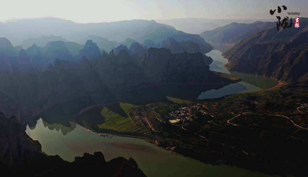 登上地質(zhì)公園群峰之頂俯視,只見千座峭峰叢林,滔滔黃河向東流,真有一山啼鳴,千山呼應的感覺。