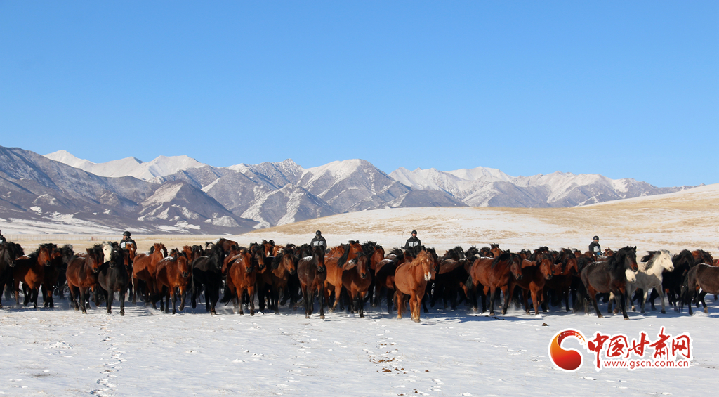 2月9日,在甘肅山丹馬場(chǎng),上演了萬馬奔騰的壯觀景象,健壯的馬蹄濺起陣陣飛雪,實(shí)屬震撼。