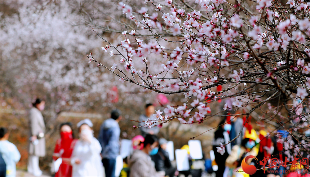 平?jīng)鍪嗅轻忌骄皡^(qū)的桃花競相綻放