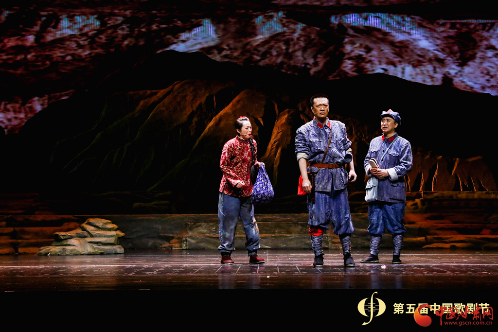 這場歌劇分為《重傷襄救》《獨闖龍?zhí)丁贰盾娒袂樯睢贰杜R危托付》《大義無畏》五個篇章,隴東民歌與交響樂、民族樂交相輝映,完美演繹了邊區(qū)群眾和紅軍將士血脈相連、攜手抗敵的悲壯故事。