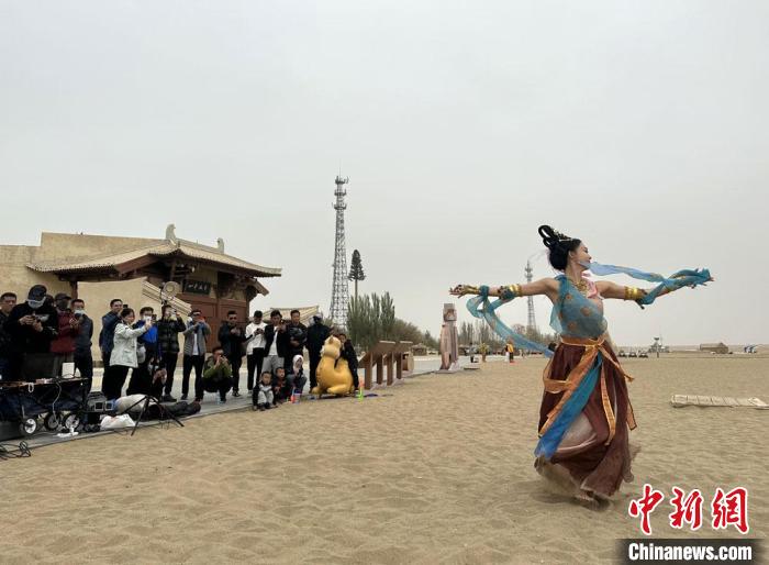 近年來(lái),敦煌市委網(wǎng)信辦以“壁畫(huà)變裝秀”“飛天舞蹈短視頻”“漫說(shuō)敦煌歷史”等形式,弘揚(yáng)敦煌文化。6月以來(lái),內(nèi)地很多敦煌舞愛(ài)好者涌向敦煌,穿上以飛天服飾為代表的各種古裝,在絲綢之路旅游網(wǎng)紅“打卡地”鳴沙山月牙泉、玉門(mén)關(guān)、陽(yáng)關(guān)等景區(qū)拍照、直播,各種不同的古裝服飾也為“大漠孤煙直”的絲路古道增添了無(wú)限色彩。