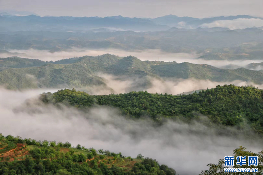 近日,甘肅省隴南市兩當縣上空云霧繚繞、煙波浩渺,縣城、山峰在霧海中若隱若現(xiàn),陽光從云霧間掠過,勾勒出一幅幅如夢如幻的美麗畫卷。新華網(wǎng)發(fā)(楊曉 攝)