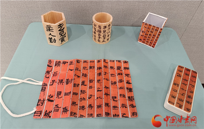 而在西北師范大學(xué)美術(shù)學(xué)院,簡(jiǎn)牘則以文創(chuàng)的形式呈現(xiàn)美感,豐富著人們的生活。近日,由西北師范大學(xué)聯(lián)合甘肅簡(jiǎn)牘博物館舉辦的“簡(jiǎn)述中國(guó) 牘懂絲路”展覽正在展出,包含簡(jiǎn)牘書(shū)法、文創(chuàng)成果兩部分。