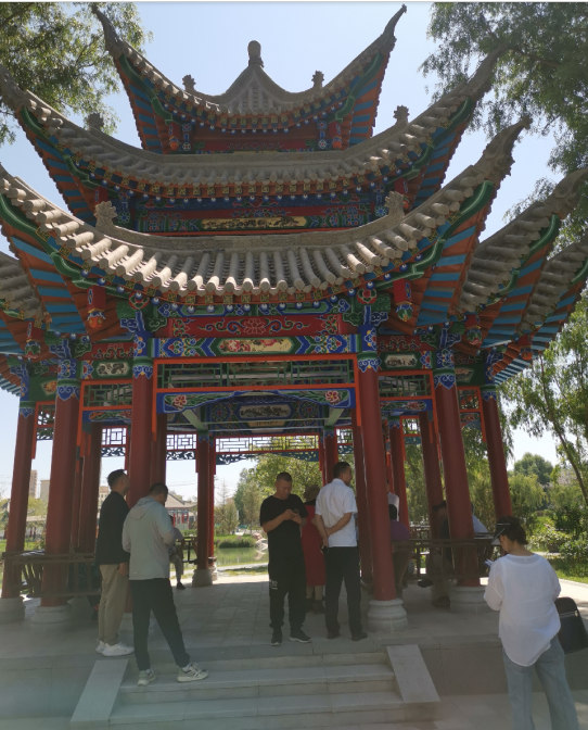 癸卯夏末,甘肅省、蘭州市著名詩人聯(lián)家一行10余人,應(yīng)邀來到著名的史前遺址——齊家文化發(fā)現(xiàn)和命名地——廣河縣,考察該縣城新建成的公園,為其命名,并撰寫楹聯(lián)、匾額,為橋、亭、榭、湖、軒等景點(diǎn)命名。