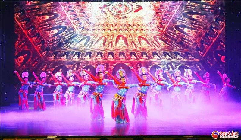 除了甘肅省民族歌舞團(tuán)和西北民族大學(xué)舞蹈學(xué)院聯(lián)袂獻(xiàn)上的精彩節(jié)目外,當(dāng)晚,肅州區(qū)文化館還為觀眾奉獻(xiàn)了舞蹈《西域羯鼓》。據(jù)悉,羯鼓源自西域,狀似小鼓,兩面蒙皮,均可擊打,既能表現(xiàn)快速緊急或激烈的情緒,又可以用散淡悠長(zhǎng)來(lái)營(yíng)造靜謚雅致的氛圍。表演中,舞者著霓裳,帶搖冠、掛嚶珞,貼著金花的衣裙飄曳、巾帶飛舞,四周天花飛落,如夢(mèng)如幻。該節(jié)目通過(guò)歡快的音樂(lè)、輕快的舞步、流暢的隊(duì)形變換等形式,展現(xiàn)了極具特色民族舞蹈風(fēng)格,也反映了隴原兒女團(tuán)結(jié)奮進(jìn)、昂揚(yáng)向上的精神面貌。