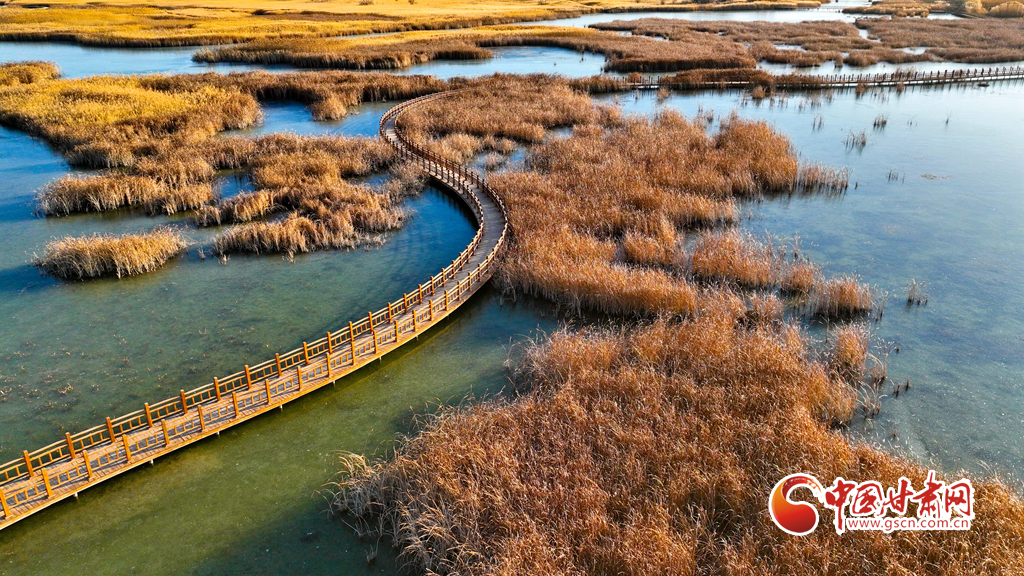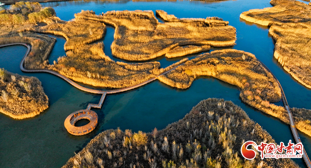 11月25日,在夕陽(yáng)映照下的甘肅張掖黑河濕地國(guó)家級(jí)自然保護(hù)區(qū),金色繁茂的蘆葦長(zhǎng)滿(mǎn)水面,碧水環(huán)繞其中,清風(fēng)吹過(guò),綠波蕩漾,成為市民和游客心曠神怡的好去處。