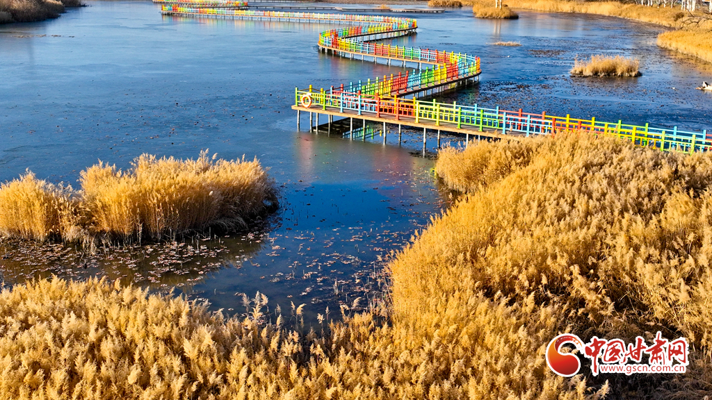 初冬時(shí)節(jié),張掖黑河濕地國(guó)家級(jí)自然保護(hù)區(qū)的蘆葦、蒲草等植物在秋風(fēng)、冬霜的吹拂下都變成了金黃色,密密的蘆花舞動(dòng)著裊娜的身姿,倩影婆娑,蘆葦叢里鳥(niǎo)鳴啾啾,整個(gè)濕地成為了一片金色的童話(huà)世界,讓人產(chǎn)生無(wú)限遐思。