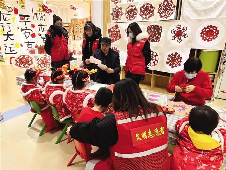 12月28日,西站街道西客站社區(qū)攜手華府寶貝幼兒園、蘭州市德鄰社會工作服務(wù)中心開展了“當(dāng)非遺遇上新年”慶元旦迎新年主題活動。社區(qū)和幼兒園特別設(shè)立新年館、騰龍館、京劇館、剪紙館、書畫館以及扎染館六個場館,讓非遺與元旦相結(jié)合,體驗(yàn)和傳承相呼應(yīng)。
