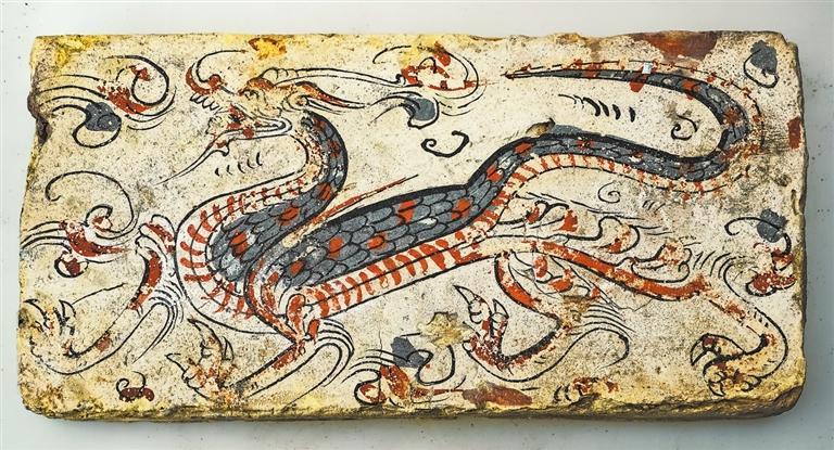 中國人恪守天人合一、陰陽平衡、五行生克的風水理論,風水中龍脈對人心理的影響深遠,使得龍在建筑裝飾、墓葬中普遍應(yīng)用,成為中國建筑裝飾藝術(shù)的瑰寶。隨著兩漢磚室墓的出現(xiàn)和流行,由星辰崇拜衍生而來的四靈形象,逐漸成為墓葬建筑裝飾的重要元素,如金昌市博物館藏的魏晉青龍磚,龍首高昂,龍須上揚,曲頸挺胸,張口吟嘯,前肢登騰,后肢做行進狀,周圍環(huán)繞云氣紋,有隨云彩而飛動之感。