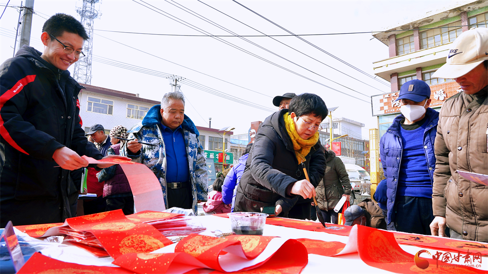 熱鬧非凡的市場靜寧市民正在置辦春聯(lián)、福字等年貨……迎接新年