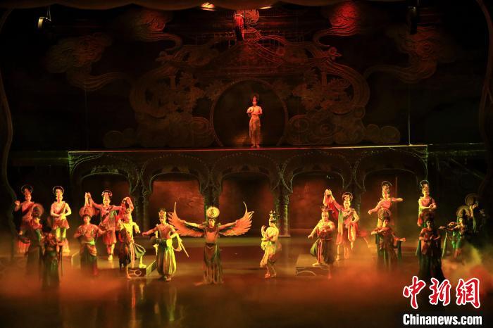 資料圖:2023年10月16日,甘肅敦煌《樂動(dòng)敦煌》劇場(chǎng)內(nèi),演職人員進(jìn)行表演。李亞龍 攝
