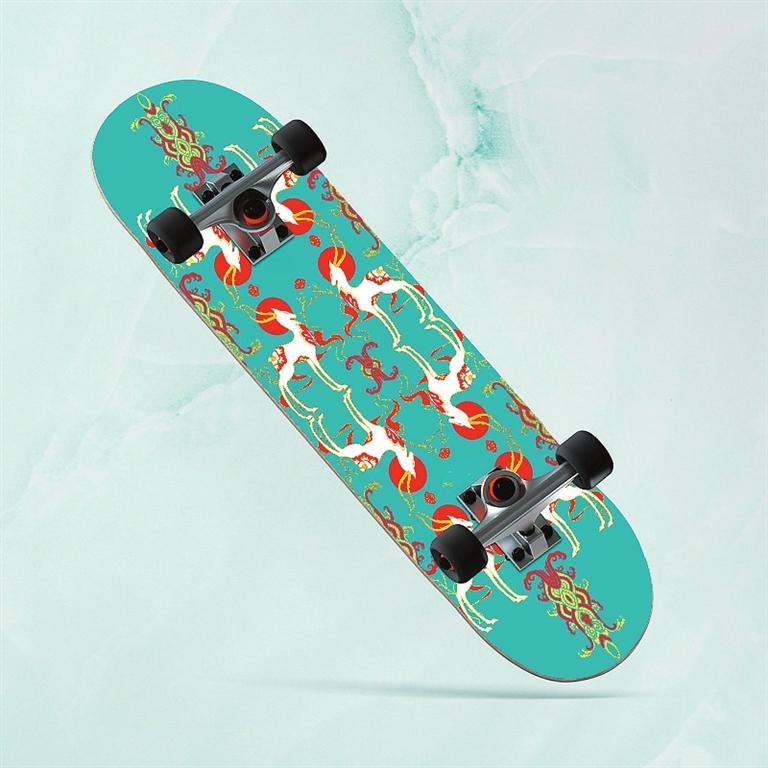 九色鹿滑板——以敦煌壁畫與極限運動相結(jié)合的設(shè)計,不僅讓傳統(tǒng)文化玩出了新花樣,同時掀起了一場以敦煌文化為代表的傳統(tǒng)文化消費潮。九色鹿滑板,既代表年輕人的活力和動力,又融合了神秘敦煌的藝術(shù)風(fēng)格。以九色鹿為創(chuàng)意靈感的敦煌九色鹿系列聯(lián)名滑板,用扁平插畫風(fēng)格進行再創(chuàng)作,用纖細柔美的線條凸顯九色鹿的優(yōu)美身姿,既保留傳統(tǒng)圖案的華麗精巧,也符合現(xiàn)代審美。