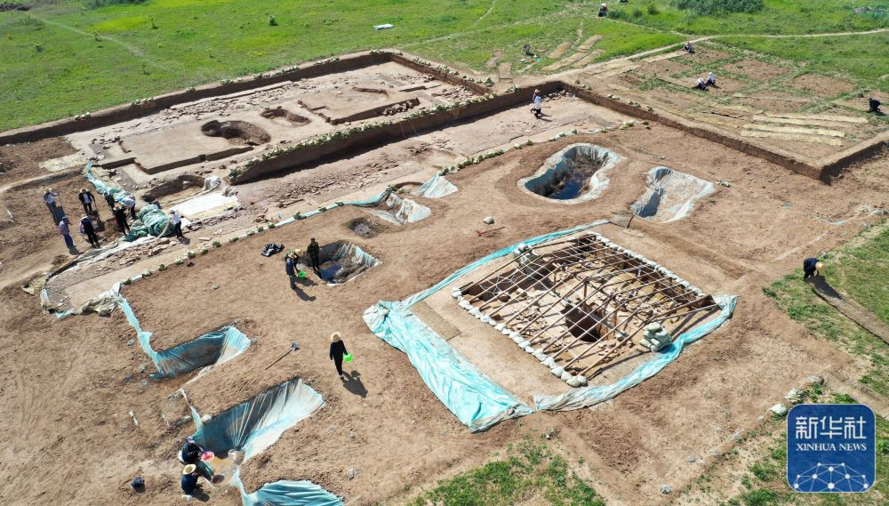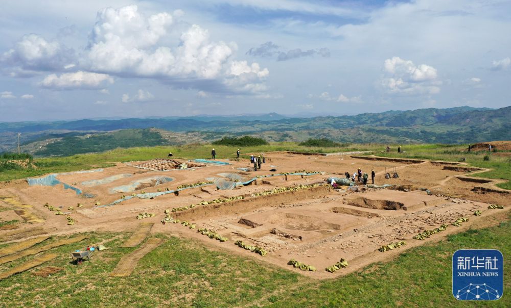 這是2022年6月10日拍攝的甘肅省隴南市禮縣四角坪遺址考古發(fā)掘現(xiàn)場(chǎng)(無人機(jī)照片)。新華社記者 郎兵兵 攝