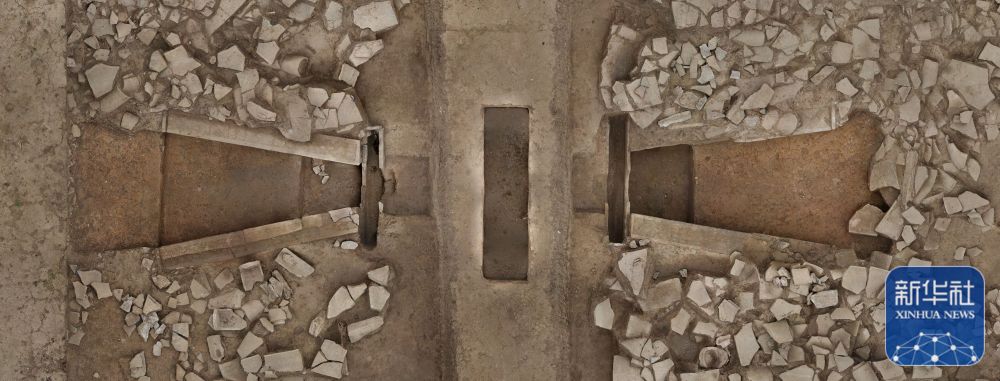 這是甘肅省隴南市禮縣四角坪遺址的排水設(shè)施(2024年1月8日攝,無人機(jī)照片)。新華社發(fā)(四角坪遺址考古隊(duì)供圖)