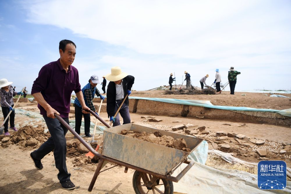 工作人員在甘肅省隴南市禮縣四角坪遺址考古發(fā)掘現(xiàn)場(chǎng)工作(2022年6月10日攝)。