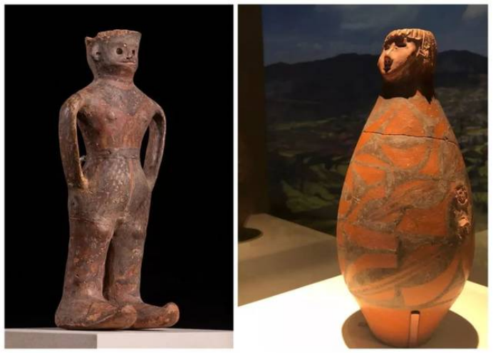 隴東有少女,而位于河西的玉門(mén)火燒溝同樣出土了一件距今3700多年的人形彩陶罐,被人們稱(chēng)做“河西少年”。在2019年“少女”與“少年”這一對(duì)“金童玉女”就已經(jīng)邂逅了,2019年中國(guó)國(guó)家博物館展出“絲路孔道——甘肅文物精華展”時(shí),在展覽序廳門(mén)口了生了這樣一場(chǎng)友愛(ài)的“接力”。隴東大地灣的可愛(ài)“少女”——人頭形器口彩陶瓶說(shuō):“出來(lái)有一陣子了,在京城過(guò)了端午節(jié),該回家了!在京的時(shí)間雖短,但我很高興作為代表在國(guó)家博物館迎接全國(guó)、全世界的觀眾,希望還有機(jī)會(huì)可以再來(lái)!”。河西火燒溝的酷“少年”——人形彩陶罐說(shuō):“您回家了,我接替您的工作,在展覽的大門(mén)口,繼續(xù)帶領(lǐng)觀眾領(lǐng)略多彩厚重的甘肅歷史文明!”