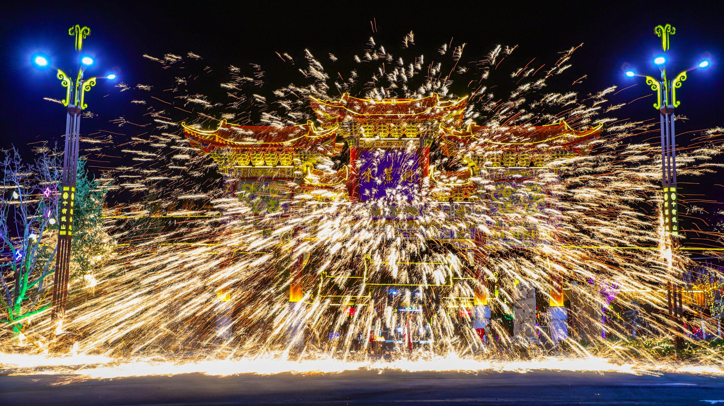 璀璨奪目的鐵花在空中綻放,場面十分壯觀。民眾在火樹銀花、星光璀璨之間感受著濃濃的中國傳統(tǒng)民俗文化。