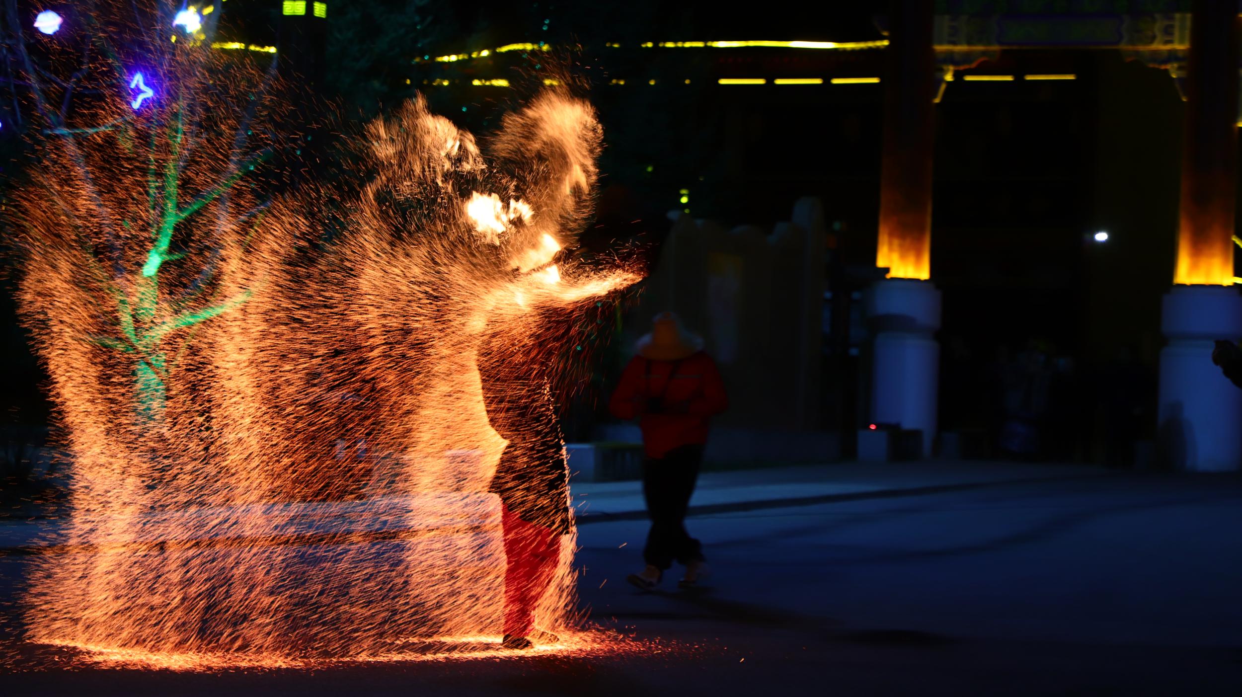 非遺絕技“打鐵花”點靚水簾洞景區(qū)不夜天