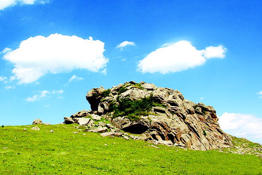 秦人遠(yuǎn)去了,只留下那些讓后人至今懷想不已的地名,諸如石鼓山、景墩梁、牧馬梁、上店子、下店子、大卜峪、瓦泉峪等,而尤以石鼓山最為著名,著名得連那部白發(fā)三千丈的《水經(jīng)注》里,都記載著它的故事:“山在梧中聚,有石鼓不擊自鳴,鳴則兵起。漢成帝鴻嘉三年,天水冀南山有大石自鳴,聲隱隱如雷,有頃止,聞于平襄二百四十里,野雞皆鳴。石長丈三尺,廣厚略等,在崖勒,去地百余丈,民俗名曰石鼓。”石鼓山是朱圉山最高峰,海拔2625米,山峰陡峭,人跡罕至,遠(yuǎn)望如石鼓,近看似臥牛,茂林幽泉,森秀無比。初春時節(jié),萬物透綠而石鼓白雪皚皚;大雨前夕,飛鳥翱翔而山上煙云彌漫。更為神奇的是,山丘之巔,突兀一石,酷似一頭臥北朝南的耕牛,翹首做犀牛望月之狀,人稱臥牛山。臥牛山石頸之下,有一巨石,其面圓而平,每當(dāng)正午陽光直射之時,遠(yuǎn)遠(yuǎn)望去,石面宛如獸皮所蒙,恰如一面威風(fēng)凜凜的巨型戰(zhàn)鼓,恍惚之中,有如雷聲隱隱而來,民呼之曰石鼓,石鼓山因此得名。石鼓山素來以厚重的人文歷史和優(yōu)美的草原風(fēng)光而著稱,尤為聞名的“石鼓擎雪”,自古就是“甘谷八景”之一。千百年來,石鼓山甘愿舍棄繁華,遠(yuǎn)離人世,在淡泊寧靜的歲月中,固執(zhí)而堅定地守望古坡,守望古坡人家。