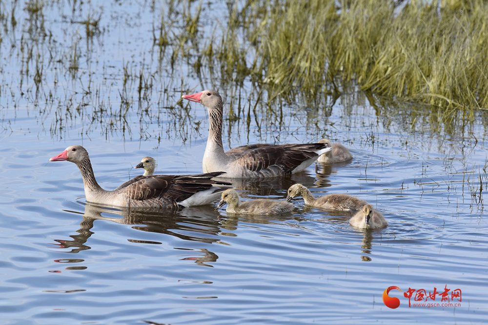 記者從甘肅敦煌陽關國家級自然保護區(qū)獲悉,近日,夏季繁殖候鳥灰雁首窩寶寶已出窩,這也是陽關濕地今年迎來的第一窩鳥寶寶。
