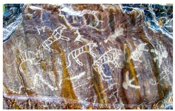 巖畫是古人在長(zhǎng)期勞動(dòng)實(shí)踐中創(chuàng)造的藝術(shù)珍品,直接或間接地表現(xiàn)了永遠(yuǎn)逝去的遠(yuǎn)古社會(huì)面貌,在一定程度上展示了人類的太古文明、上古文明和中古文明。同時(shí),體現(xiàn)了人類的起源及其生產(chǎn)方式、經(jīng)濟(jì)發(fā)展、文字起源、社會(huì)生活的變遷。