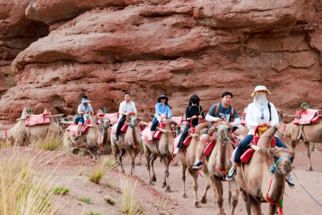 在甘州區(qū)平山湖大峽谷,采風(fēng)團成員乘坐越野車進入夢幻大峽谷谷底,在藍天白云下,縱橫的溝壑、林立的群峰、幽靜的森林、蒼茫的戈壁、多彩的民俗讓采風(fēng)團成員嘆為觀止。來自福建的微博三百萬大V張文圖說:“我已經(jīng)是第三次來張掖,此刻騎著駱駝踏入峽谷,抬頭看那高聳的崖壁帶來的震撼感瞬間將我包圍。沿著峽谷前行,每一步都充滿驚喜,太讓人驚嘆了。”“這次采風(fēng)活動為我們搭建了很好的交流平臺,特別是張掖獨特的地貌和優(yōu)美的自然風(fēng)光,都是很好的攝影素材,希望大家在這里收獲滿滿!”來自飛翔旅行的曹偉說。