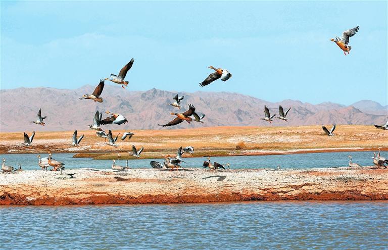 近年來(lái),經(jīng)過(guò)當(dāng)?shù)赜嘘P(guān)部門(mén)和甘肅鹽池灣國(guó)家級(jí)自然保護(hù)區(qū)的有效治理和保護(hù),野生動(dòng)物種群逐漸增多。每年遷徙至此繁衍生息的鳥(niǎo)類種群和數(shù)量不斷增加,時(shí)常上演萬(wàn)鳥(niǎo)翔集的壯觀場(chǎng)景,勾勒出一幅和諧壯美的大自然畫(huà)卷。