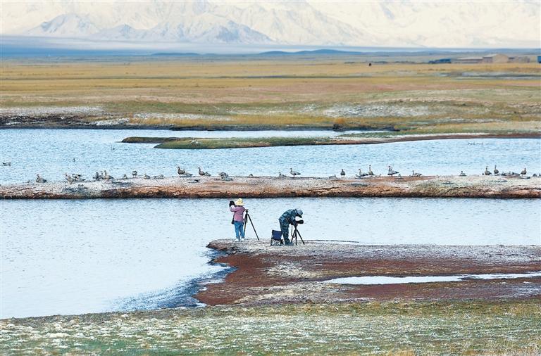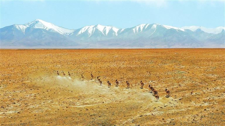 夏日的甘肅鹽池灣國(guó)家級(jí)自然保護(hù)區(qū)雪山巍峨,景色壯美。一群藏野驢時(shí)而追逐奔馳,時(shí)而悠閑覓食;大批北歸遷徙的候鳥(niǎo)自由翱翔,盡顯大自然的和諧之美。