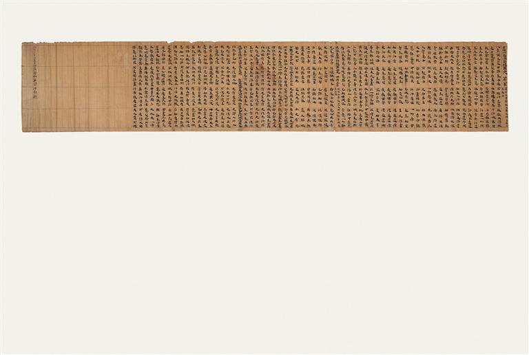 《法句經(jīng)》,前涼,卷軸裝寫本,黃麻紙,出自敦煌莫高窟藏經(jīng)洞。以隸書繕抄《道行品法句經(jīng)》第三十八、《泥洹品法句經(jīng)》第三十九兩品經(jīng)文,前有裁切痕跡,題記“升平十二年(公元368年)沙彌凈明。咸安三年(公元373年)十月廿日沙彌凈明誦習(xí)法句起”,為沙彌凈明的兩次誦經(jīng)記錄。該文物是所知現(xiàn)存敦煌文獻(xiàn)中最早的經(jīng)卷寫本,其書法藝術(shù)展現(xiàn)了“經(jīng)書體”楷法初期的特有風(fēng)姿。